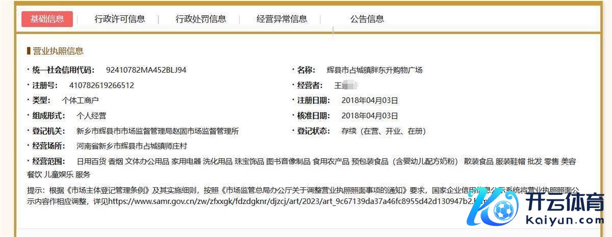 胖东升名下另一家超市、新乡市辉县市占城镇胖东升购物广场又名厚爱东谈主一样默示,胖东升照旧开了十几年了,不存在抄袭“胖东来”店名的情况。证明国度企业信用信息公示系统,该辉县市占城镇胖东升购物广场建立技艺为2018年4月3日,意见局势为河南省新乡市辉县市占城镇师庄村,登记机关为新乡市辉县市市集监督处治局赵固市集监督处治所。