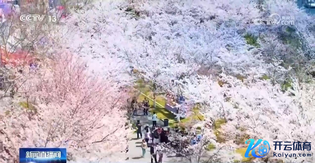 在山东烟台牟平的樱海公园,3000多棵樱花树争相怒放,延绵数公里。搭客们溜达其中,重逢春天好时光。