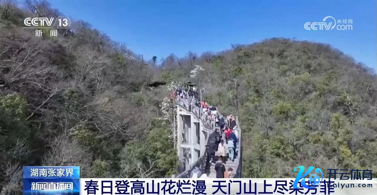 在湖南张家界开yun体育网,天门山国度丛林公园假期首日就管待搭客超2万东说念主。山间野樱花、杜鹃、玉兰点缀,搭客登高望远,鸟瞰春色满山。