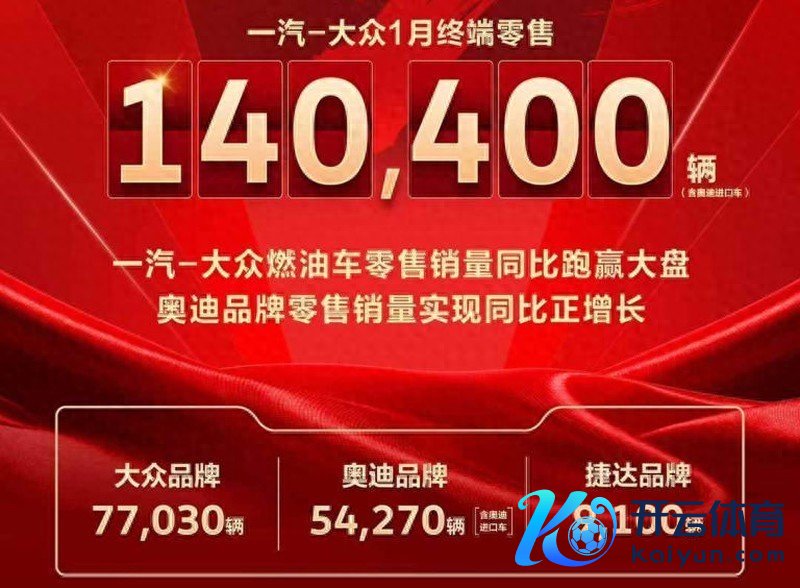 来自一汽环球官方的销量数据清醒,1月份一汽环球末端零卖量达到了140400辆,其中环球品牌销量为77030辆开云体育(中国)官方网站,奥迪品牌54270辆、捷达品牌则为9100辆,同期一汽环球在官方发布的海报中示意,一汽环球燃油车零卖销量同比跑赢大盘。