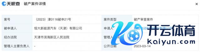 2023 年 3 月 14 日,恒大新动力汽车(天津)有限公司被请求歇业审查案件,请求东说念主为精进电动科技股份有限公司,承目的院为天津市滨海新区东说念主民法院。歇业计帐公告清楚,被请求进行歇业计帐的原因恒大新动力汽车(天津)有限公司无法退回到期债务,且资金不及以退回一起债务。