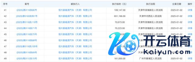 值得一提的是,过问 2025 年仅半个月多,恒大新动力汽车(天津)有限公司已累计新增 49 则被推论东说念主信息,其中,1 月 13 日至 1 月 17 日承接新增被推论东说念主信息,1 月 16 日,新增一则被推论东说念主信息,推论方向约 42 万元,推论法院为天津市滨海新区东说念主民法院。扫尾发稿,恒大新动力汽车(天津)有限公司累计被推论总金额为 9.17 亿元。