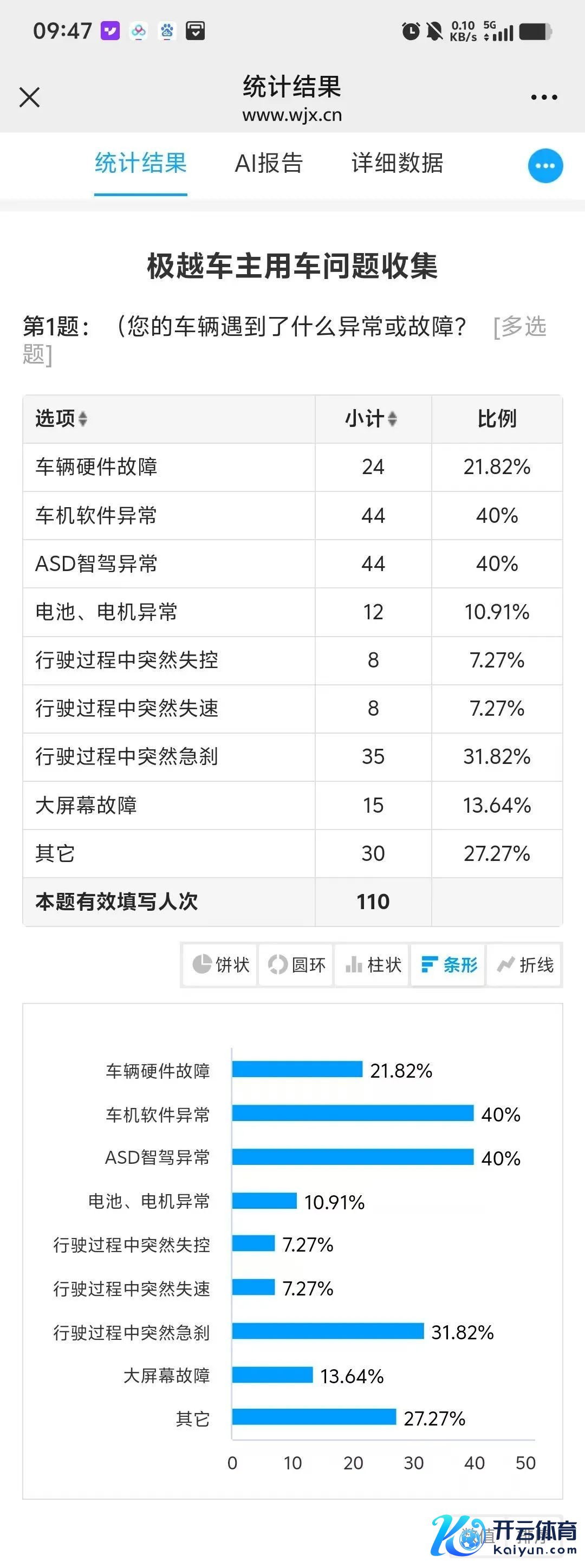 针对咫尺车友们碰到的问题,张先生在车友群里作念了一次调研,共蚁集到110位车主的反应信息。探访数据显现,车机软件相等、ASD智驾相等是车主碰到最多的问题,占比均为40%。其次,行驶经由中一会儿急刹也较为越过,占比超31%。此外,车辆硬件故障、大屏幕故障、电板电机相等、行驶经由中一会儿失速或失控亦然现时车主碰到的问题。