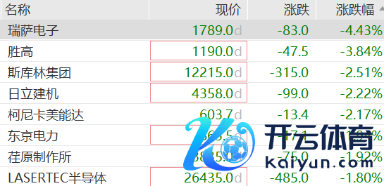 个股方面,受隔夜好意思股科技股大跌影响,瑞萨电子跌超4%,爱德万测试、东京电子、任天国等跟跌,资生堂、味之素等豪侈股连续走低。软银集团则涨超2%。
