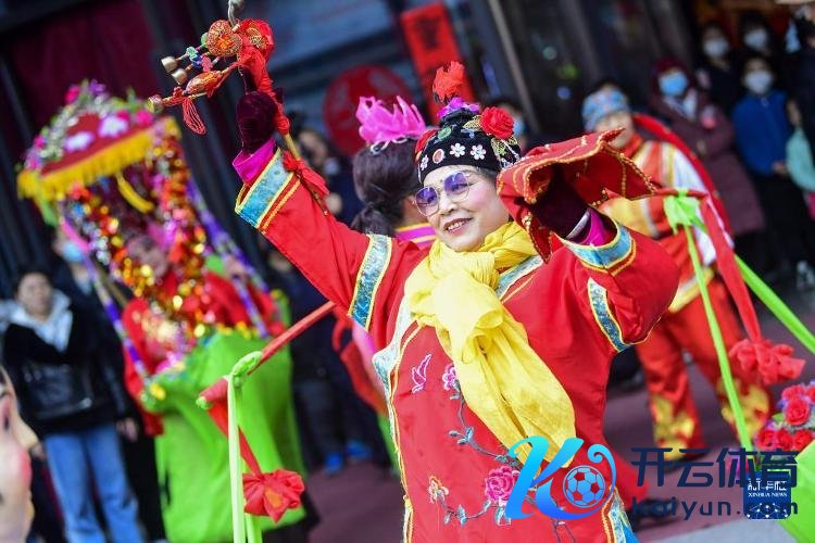 2月5日,演员在手造年货大集上饰演山东大秧歌。