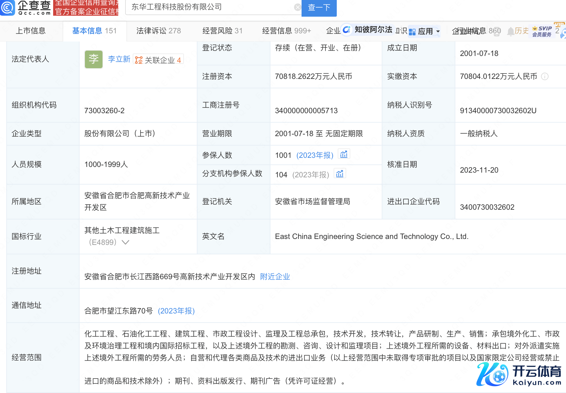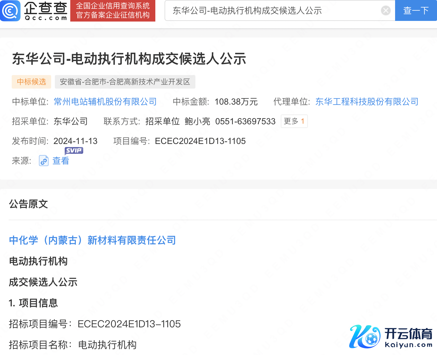 企查查APP线路,近日,常辅股份(871396)中标东华科技(002140)电动施行机构神气,中标金额108.38万元。企查查信息线路,东华科技成立于2001年,法定代表东说念主为李立新,注册成本7.08亿元东说念主民币开云体育(中国)官方网站,由中国化学(601117)曲折控股。