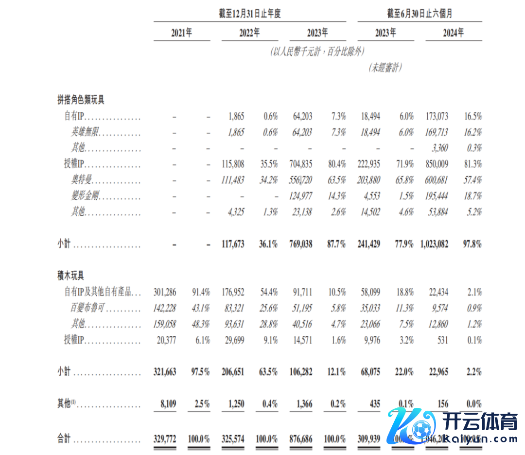 拆解布鲁可的营收构成可看出,比年来公司的事迹增长能源主要来自拼搭脚色类玩物,尤其是与奥特曼估计的IP。2023年及2024年上半年,布鲁可基于奥特曼IP的居品销售收入,折柳占公司收入的63.5%及57.4%。
