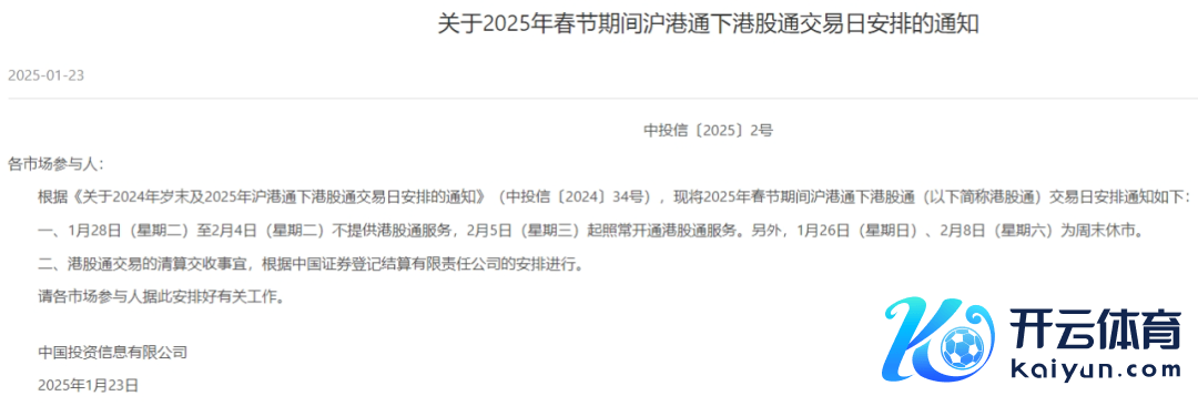 港股通方面,沪深往来所明确,1月28日(星期二)至2月4日(星期二)不提供港股通干事,2月5日(星期三)起照常怒放港股通干事。另外,1月26日(日曜日)、2月8日(星期六)为周末休市。