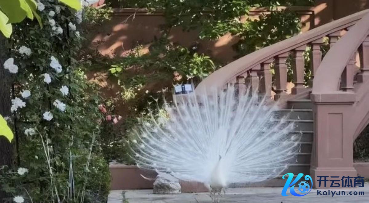 从其共享的视频来看,经常会拍到一只白色孔雀的身影,从一启动羽毛没那么丰润,到长出长长的翅膀,在院子里开屏。