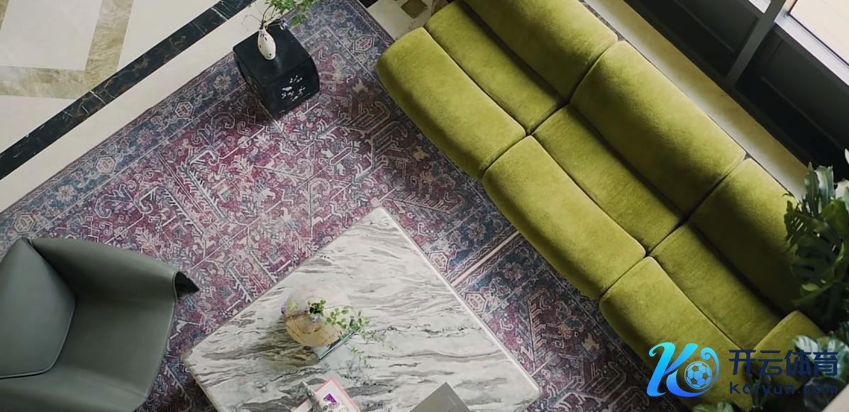 她把每一个空间都盘算得很有滋味,比如甩掉绿沙发的客厅中,配的是紫色系的摩洛哥风地毯,搭配大理石茶几和千般绿色系的沙发,既时髦又有韵味。