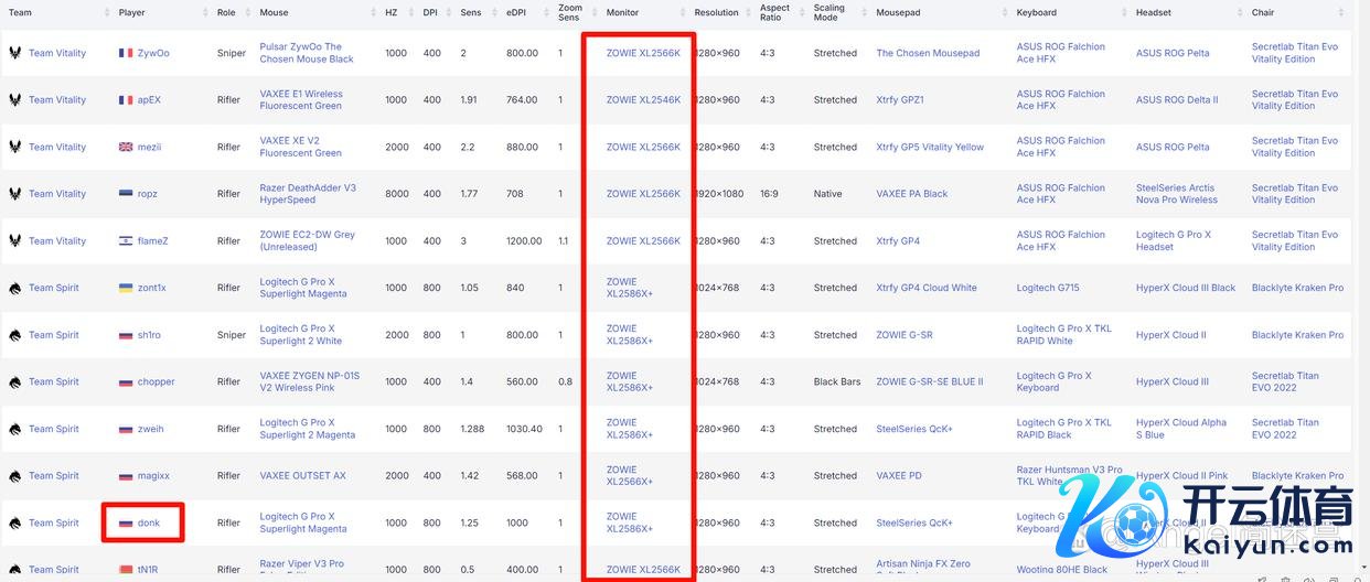 要知说念,在CS2的办事圈,卓威表现器的使用率高达93.39%,包括Donk也在用2586x+。