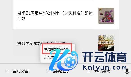 领取这份专属馈送的花式简便而充满庆典感:请您最初过问《但愿OL》官方微信公众号,点击底部菜单栏中的【最新行径】,并选拔【免费领取坐骑】。在弹出的页面中,只需生效绑定您的游戏账号,随后复返公众号对话框,轻轻输入那句专属谜语——“领取公众号专属坐骑”,就不错拿到坐骑的专属兑换码了。