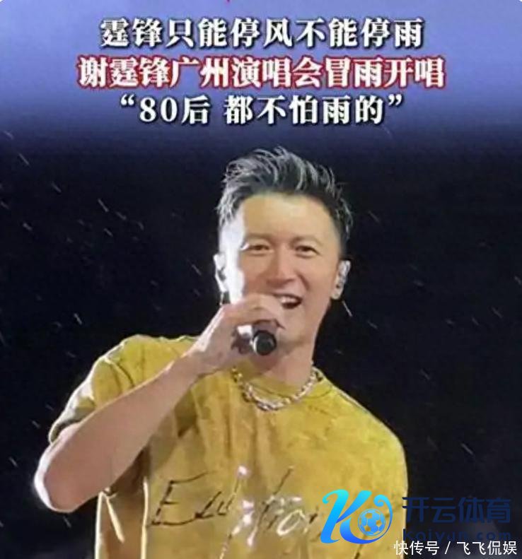 暴雨中的谢霆锋像是舞台上的炎火战神。全身湿透,倡导依然顽强,手脚依旧帅气。金曲一首接一首,狂飙厚谊,台下粉丝也出头出头,雨衣裹身、脚踩水滩,陪偶像沿路嗨翻天。“80后,不怕雨!”谢霆锋辱弄,巨匠随着呼应,“是啊,有雨才有简易!”