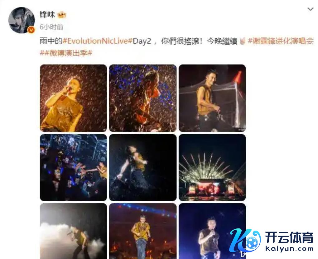 9月19日至21日,谢霆锋在广州大学城体育中心率领场举办"Evolution Nic Live 谢霆锋进化演唱会",底本演唱会嗨翻全场,一场台风搅出了“天降泪雨”的私有简易。谢霆锋重返舞台,二十年后再度开唱,谁料天公不作好意思――暴雨如注,风雨错乱,统统这个词率领场仿佛成了水帘洞。但谢霆锋却寂寥湿透丧胆登场,现场五万东谈主首肯震天。这让歌迷也念念起了昨年薛之谦北京演唱会中突下暴雨,着力现场愈加火爆的方位,酿成了薛之谦暴雨蹦迪《我大略在哪见过你》DJ版,火爆全网。