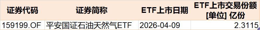 当今有1只ETF表现下周上市,追踪主义为石油自然气。
