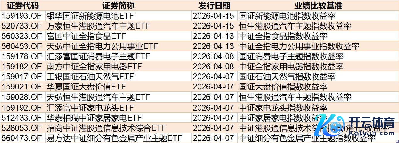 当今有9只ETF表现下周刊行,追踪主义为有色金属、港股通讯息技能、家电、汽车、石油自然气等。